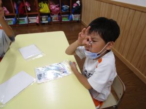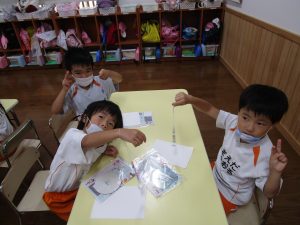キラキラがたくさんでき、「すごーい」と感動するきりん組さんでしたよ💕楽しい実験ができ、大満足の様子でした!(^^)!また、お家でも、やってみてくださいね💛
