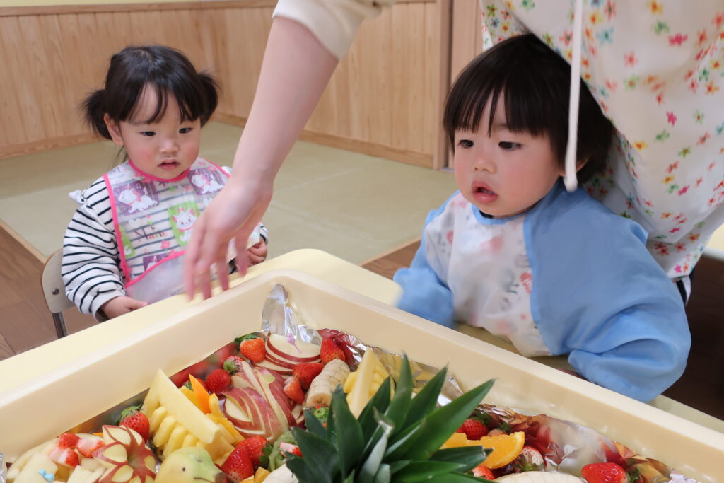 お皿に盛り付けられた美味しそうな料理やフルーツを見て子どもたちもより楽しみになっていました🎵