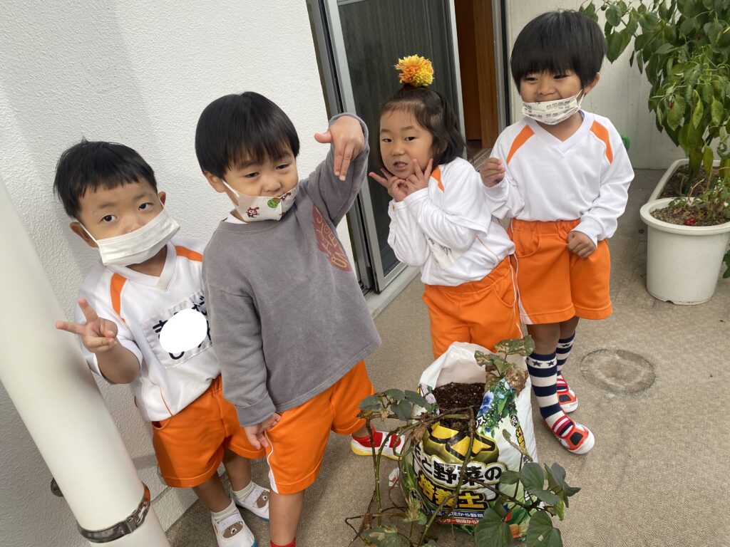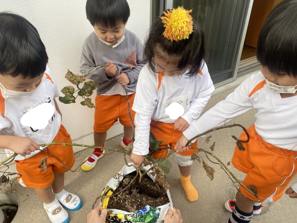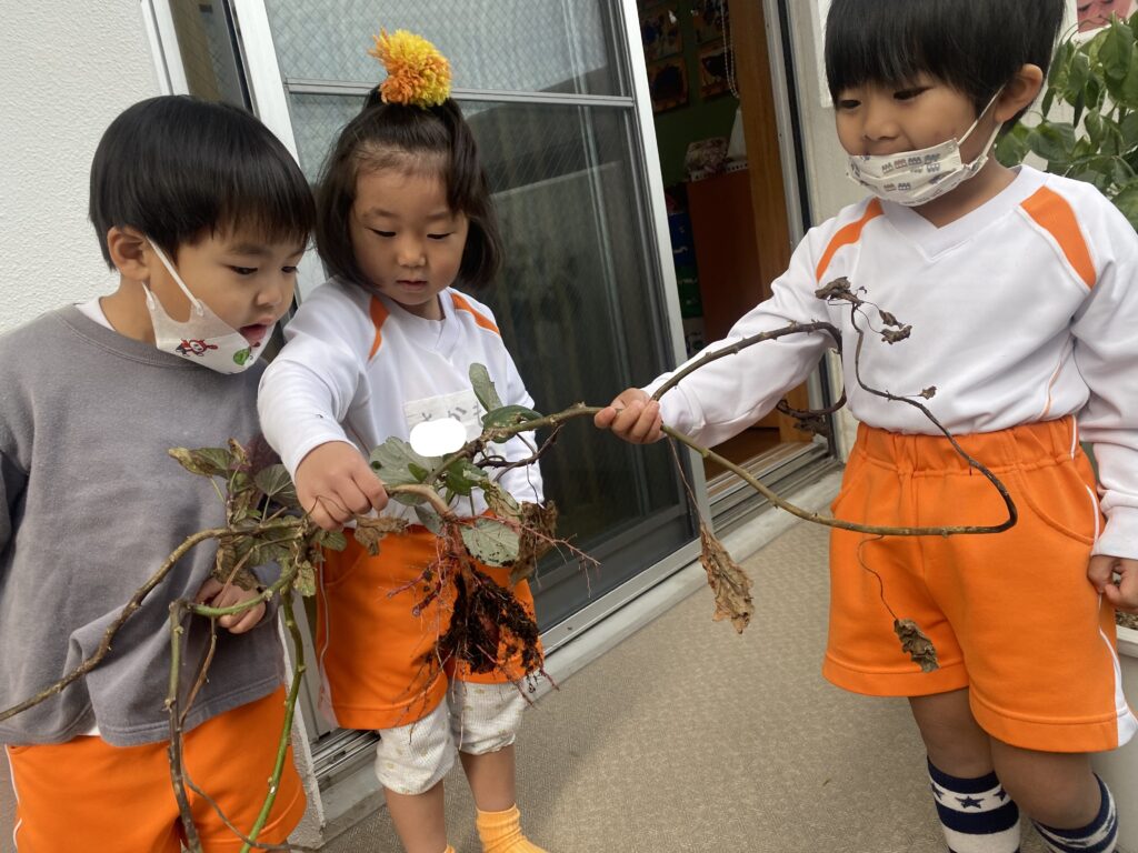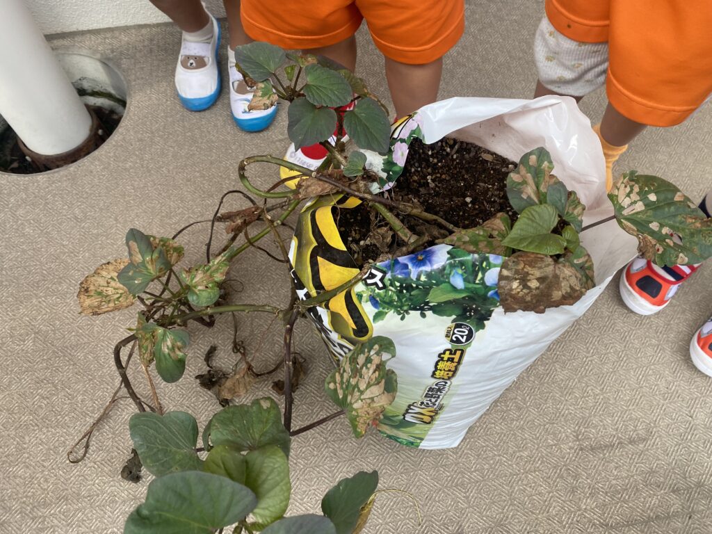 クッキングの前に、ぱんだ組で育てていたお芋の