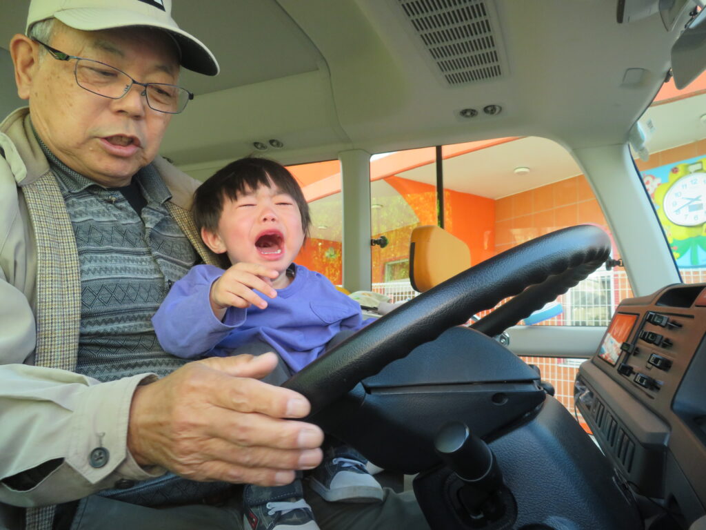 運転席に行くと、少し涙も見られましたがハンドルを動かし運転手気分を味わていました\(^o^)/