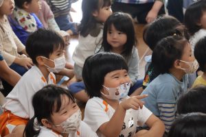 年少組の子どもたち,楽しそうに笑っています。人形劇からの経験が豊かな心を育んでいきます。