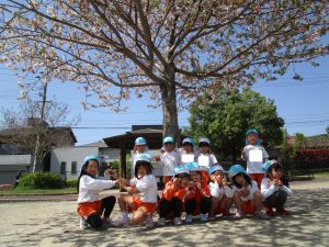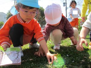たくさん走った後は、ぞう組さんみんなで春探しをしました!
