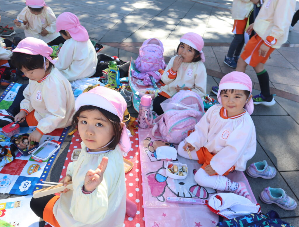 お弁当をあけ、嬉しそうにみんなで見せ合う姿が