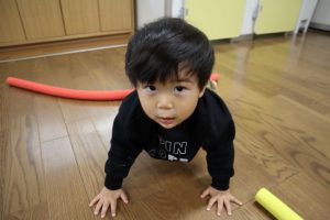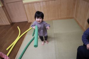 大型ソフトブロックを上手に使い、自分の背より高く積み上げたり枕にしてゴロゴロとリラックスして遊んでいました。