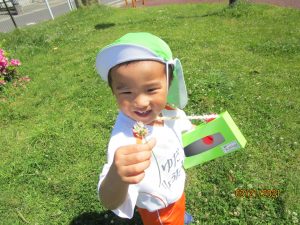 シロツメクサを見つけると、「持って帰ろ~う♡」と嬉しそうに