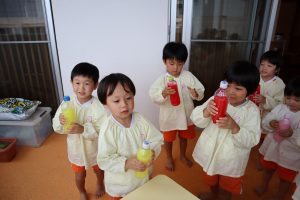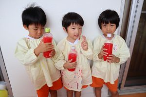 『赤と青混ぜたら、ぶどうジュースになったよ!』と